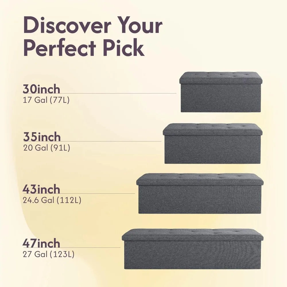 folding storage ottoman bench, 43" footrest, bed end chest, holds 250lbs, living room furniture